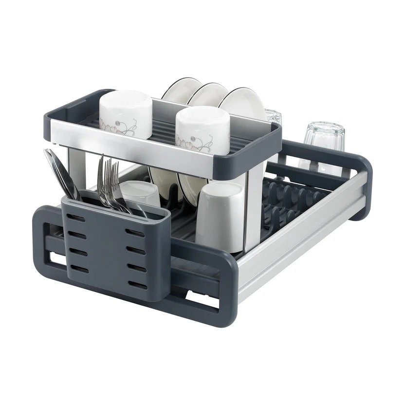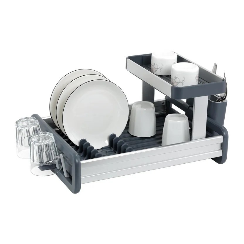 Égouttoir à vaisselle haut de gamme à deux niveaux en aluminium